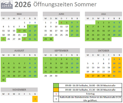 Betriebszeiten Mautstraße