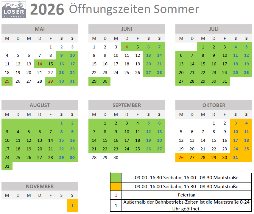 *verpflichtende Anmeldung mindestens 7 Tage vor Auffahrt unter kassa@loser.at