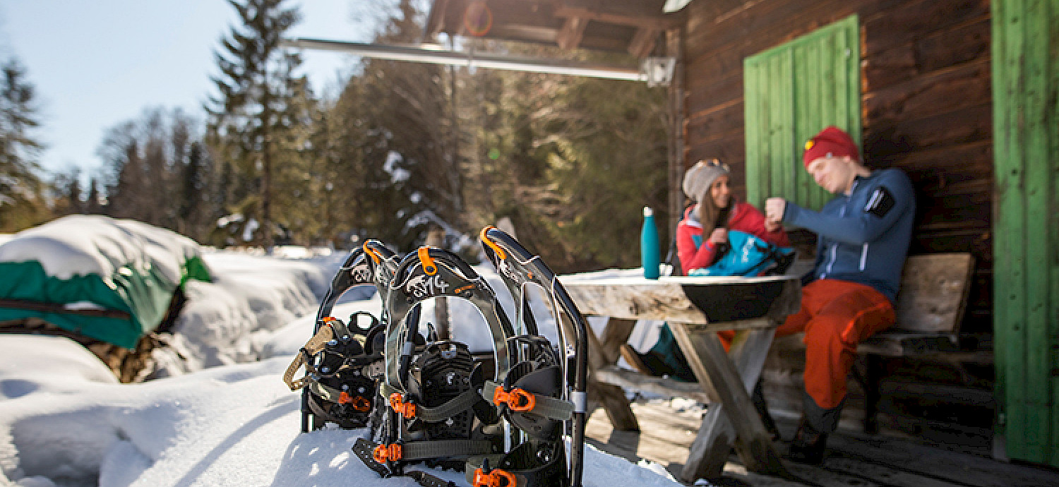 Enjoy a guided snow-shoeing tour with one of our certified mountain-guides.